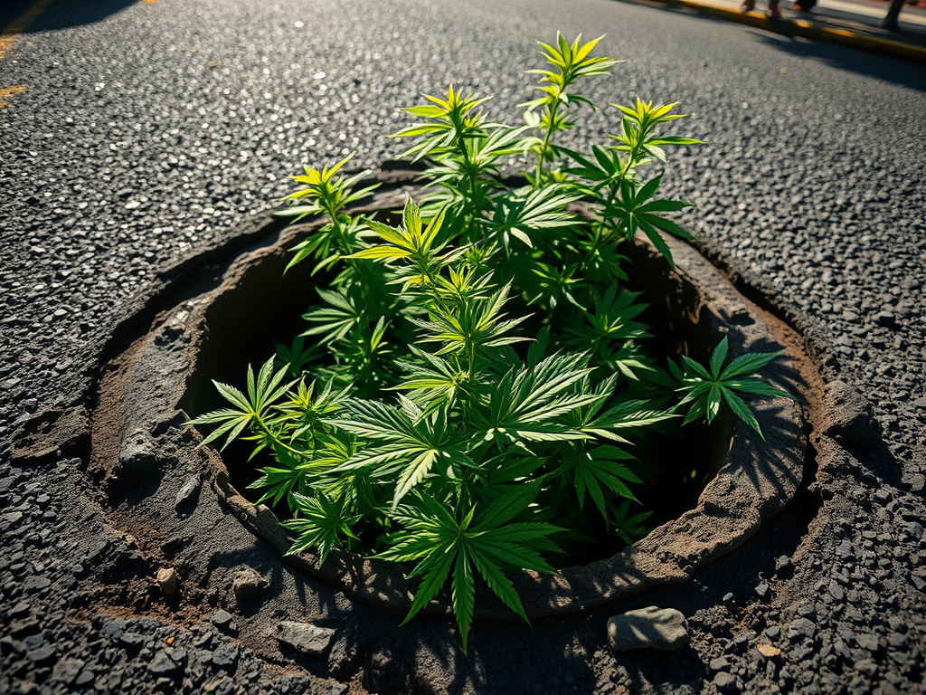 “The police seized so much pot they didn’t have anywhere to store it all,” said Tim Gutterson of Bennett Asphalt & Consumables. “One of our guys got into his own stash one night and came up with the bright idea to fill the Kinston potholes with pot.”